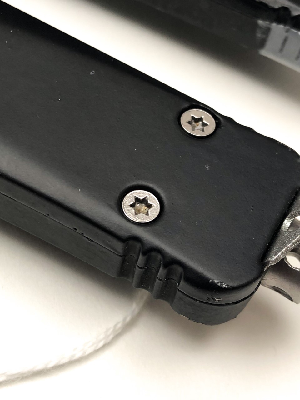 Microtech® Knives uses proprietary tri-wing screws made in-house. We do not outsource our screws, and they are unique to our brand. Replications of our screws will have incorrect coloring, finish, or dimensions. The screws may look cheap or have alternate shapes, curves, and designs. If screws look different from our proprietary ones, this is a red flag. Please note that the appearance of our screws has changed over time. Tri-wing is the current version.